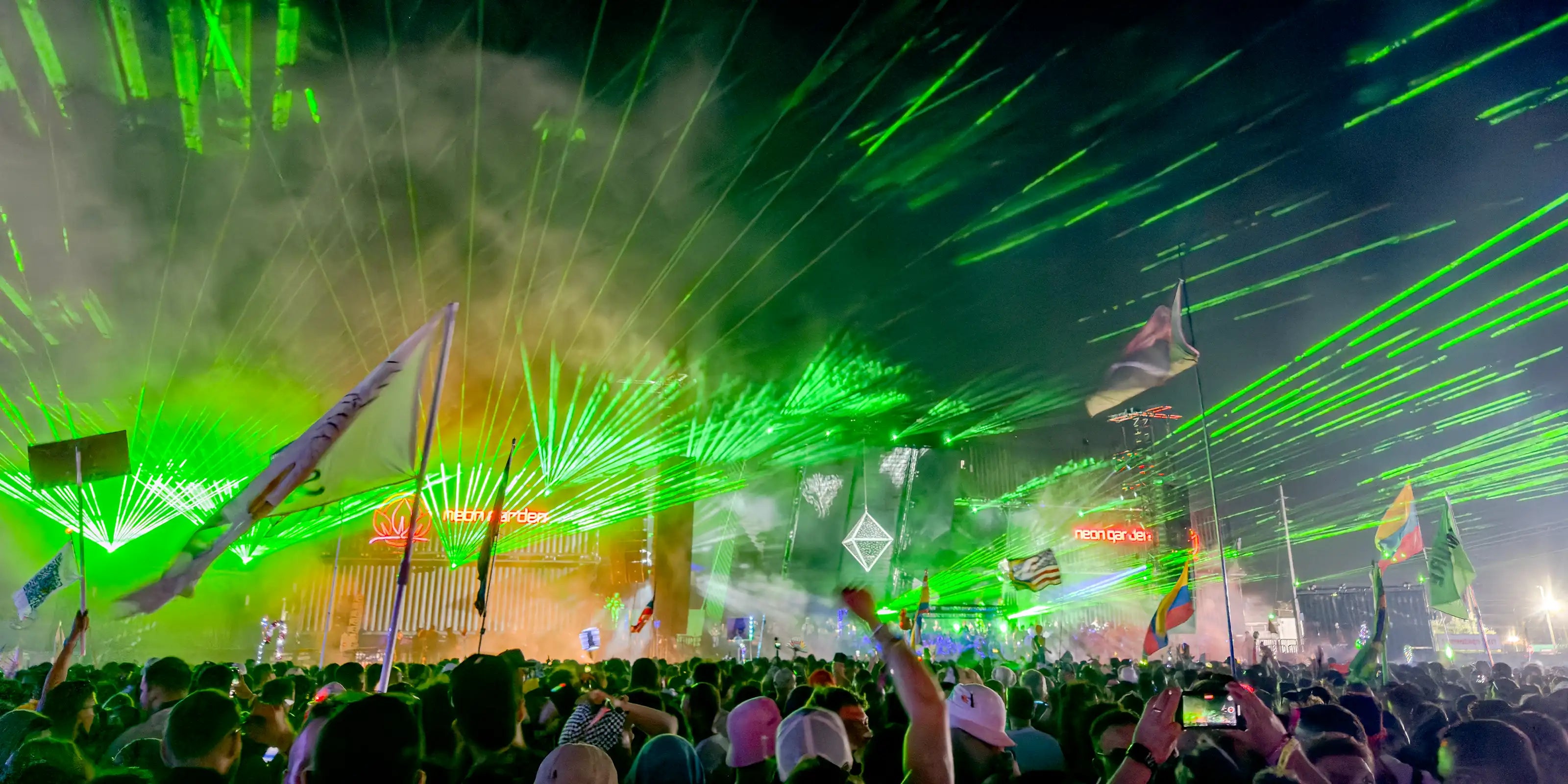 Lasers are now one of the primary special effects at today’s largest music, EDM, and related festivals. From EDC and Tomorrowland to Coachella and Lollapalooza, lasers at festivals provide a high-impact, exciting lighting element that energizes the crowd in a way no other special effect can. Additionally, lasers at festivals are now being used as an alternative to classic effects like pyrotechnics and fireworks, as they are much safer to work with, and in many cases easier to deploy.